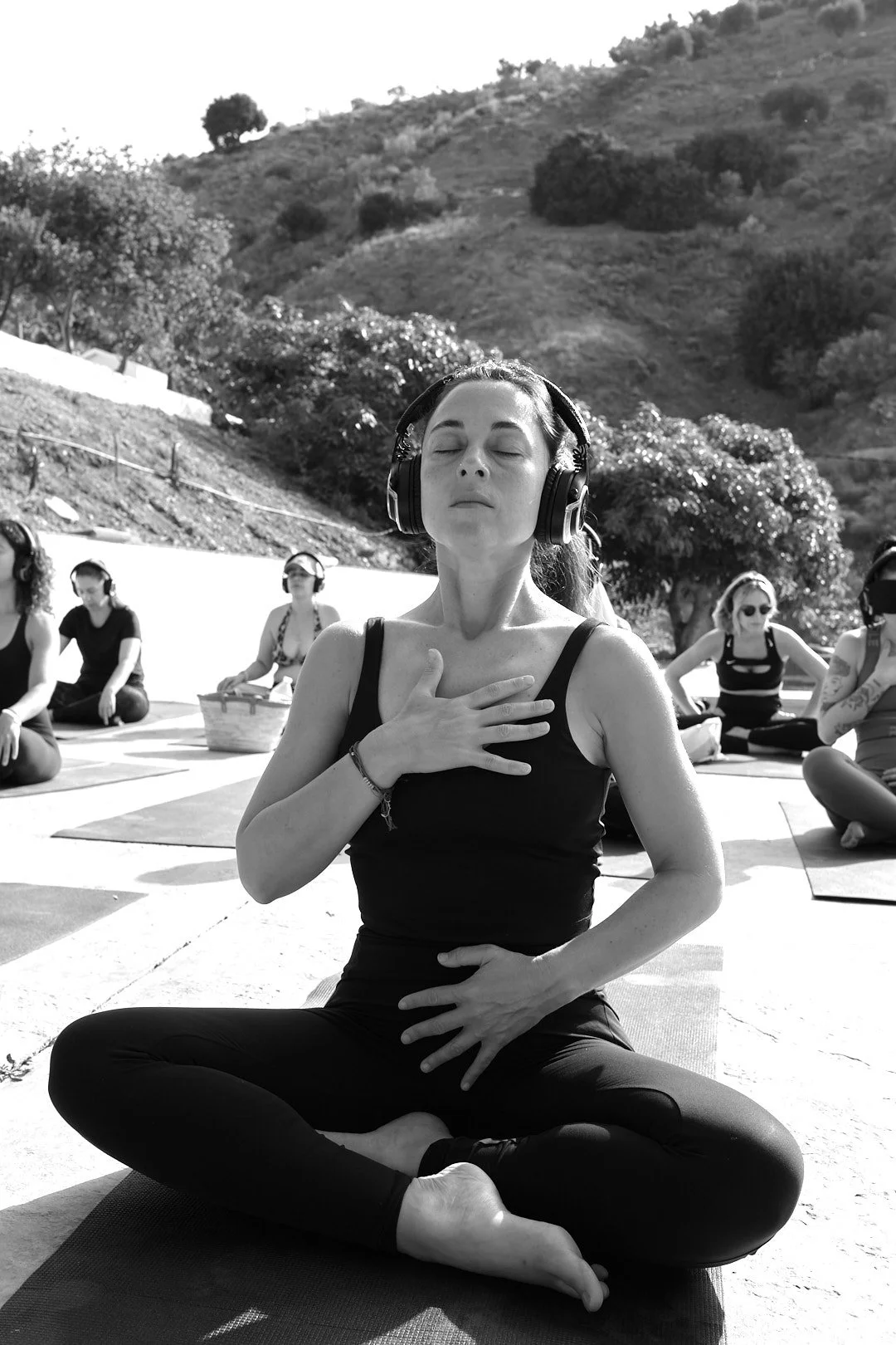Respiración consciente, yoga dinámico y meditación guiada.08:30h – Desayuno al sol