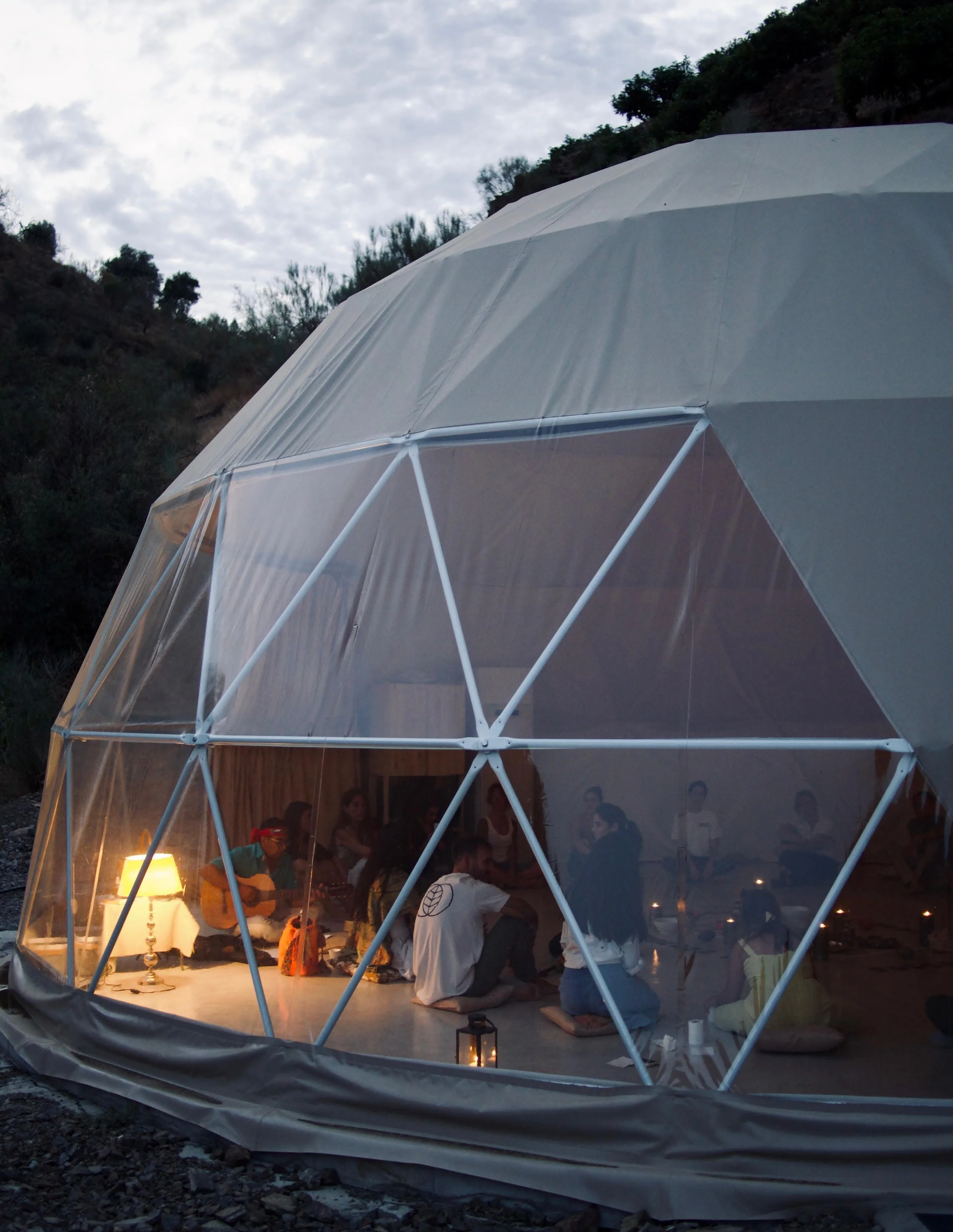 La geometría sagrada es el conjunto de formas y patrones geométricos que se encuentran en la naturaleza y en el diseño de lugares sagrados. Nuestro domo geodésico, basado en estos principios, posee un profundo , significado simbólico y múltiples propiedades energéticas. Activar estos códigos de geometría sagrada nos ayuda a silenciar la mente analítica (hemisferio izquierdo) y a conectar con el inconsciente profundo. Nos permite entender el lenguaje de nuestras células y nuestro ADN, despertando partes dormidas y ocultas, y reconectando con nuestra sabiduría interna.